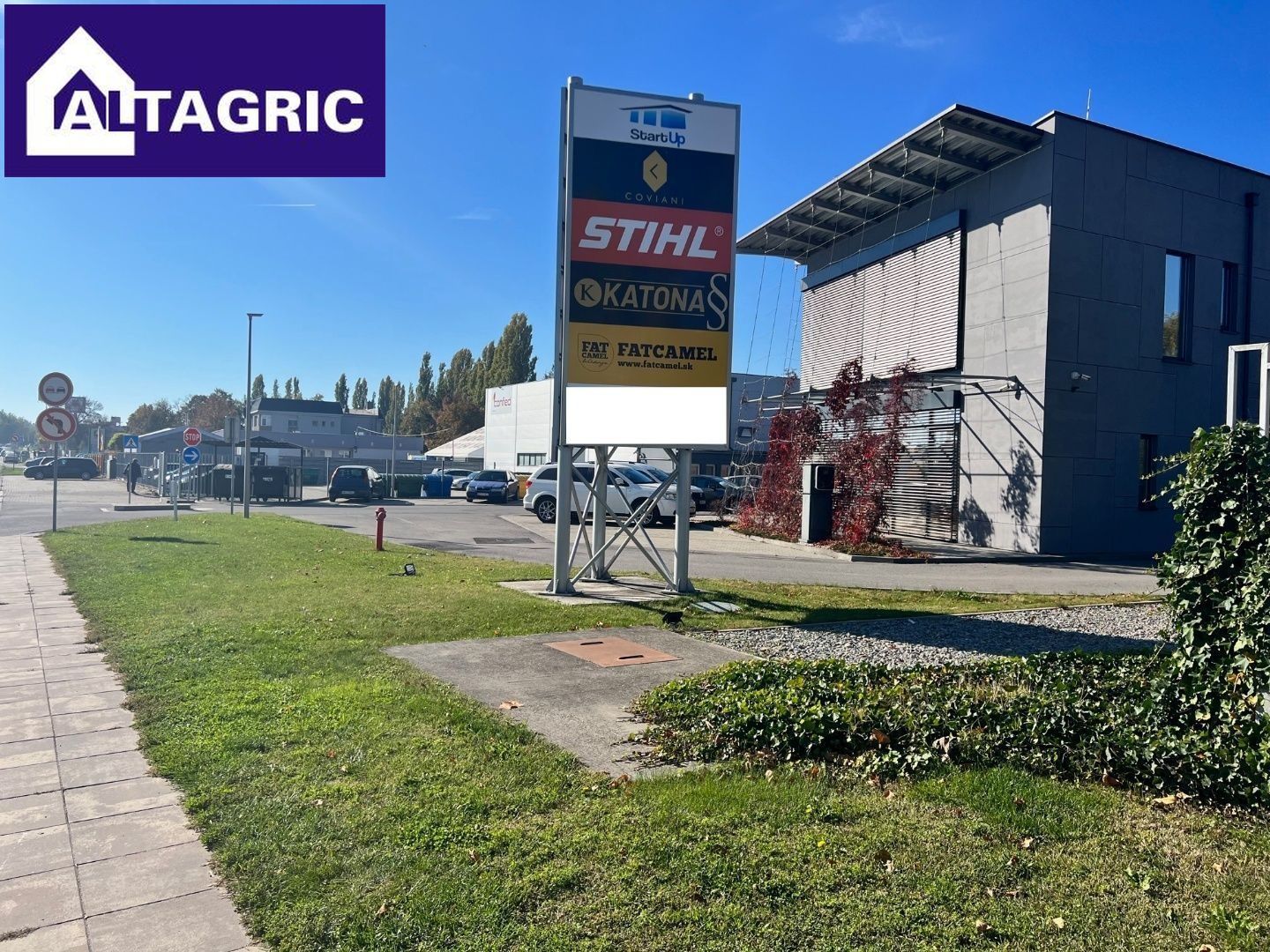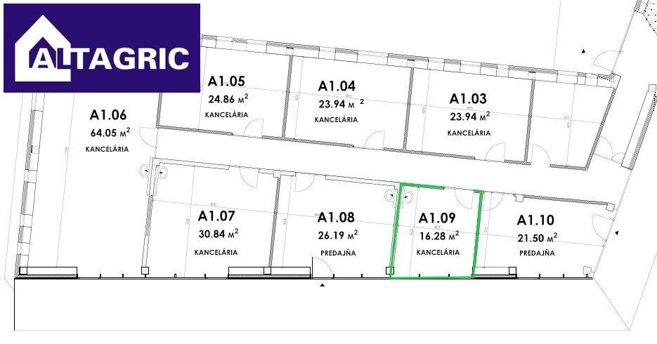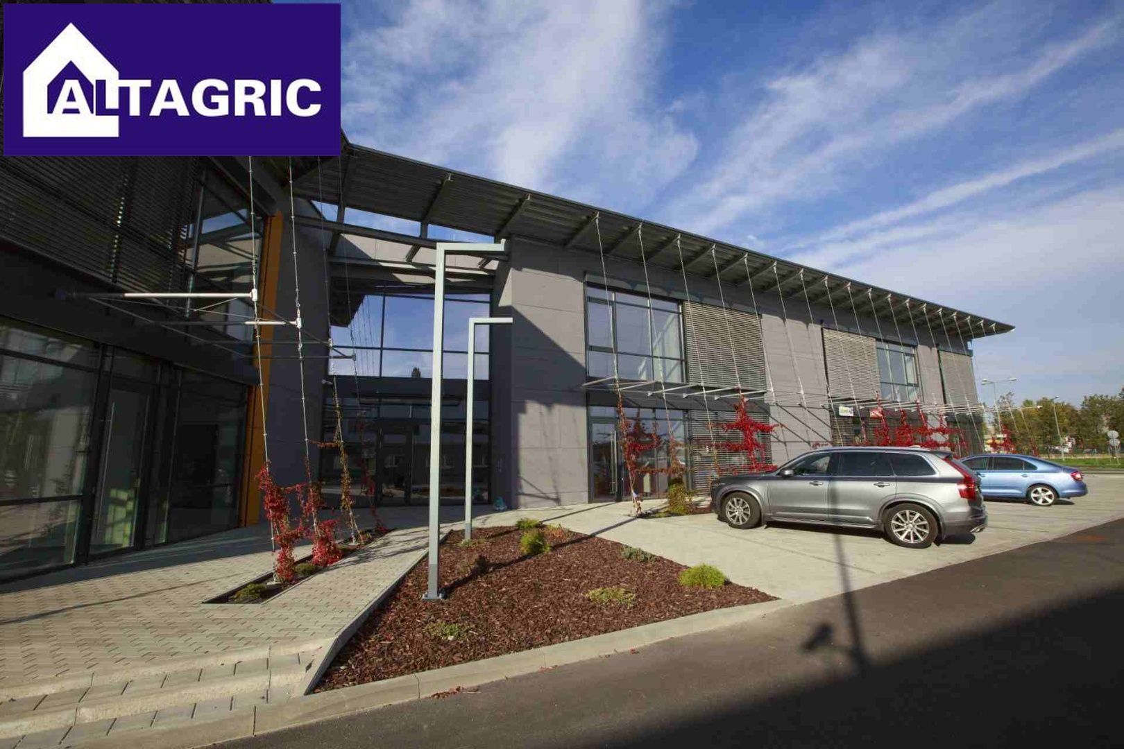 Kancelárie na prenájom v novostavbe polyfunkčnej budovy. Kancelárie sa nachádzajú na 2.nadzemnom podlaží dvojpodlažnej budovy. Kancelária B209 s plochou 44,64m2, má cenu 555,32€/mesiac. Kancelária B210 s plochou 23,3m2 (s prívodom vody) má cenu 289,85€/mesiac. V cenách kancelárií sú zahrnuté poplatky za služby. Pred budovou je vlastné parkovisko a na pozemku reklamný pútač, ktorý je možné využiť grátis. Kancelárie majú vlastný merač spotreby energii.  Kontakty:  Anikó Lévaiová GSM: 0907594144 E-mail: levaiova@altagric.sk Ing. Ľudovít Józsa GSM: 0907892781 E-mail: jozsa@altagric.sk